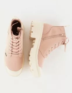 Palladium Pallabase Twill Boots. An elevated conscience stays above the noise. That’s the feeling being the Pallabase Twill, a higher level of feminine sophistication in a package that is clearly Palladium. The heel counter of the chunky outsole has been made higher for a lifted look, and the durable twill upper has a discrete side zip entry. A refined boot for those who take the high road. Imported.