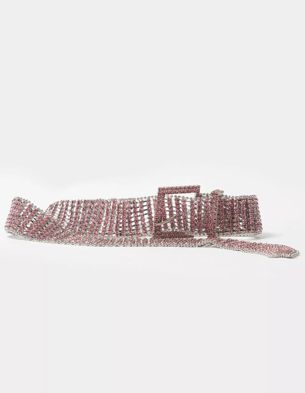 Pink Rhinestone Belt. Silver tone with pink rhinestones Rhinestone-covered buckle. Imported.