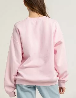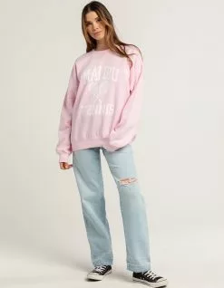 Project Social T Malibu Tennis Crewneck Sweatshirt. Large graphic screened on front. Ribbed crew neckline. Cuffed long sleeves and hem. Fleece lining. 50% Polyester, 50% Cotton. Machine wash. Made in USA.