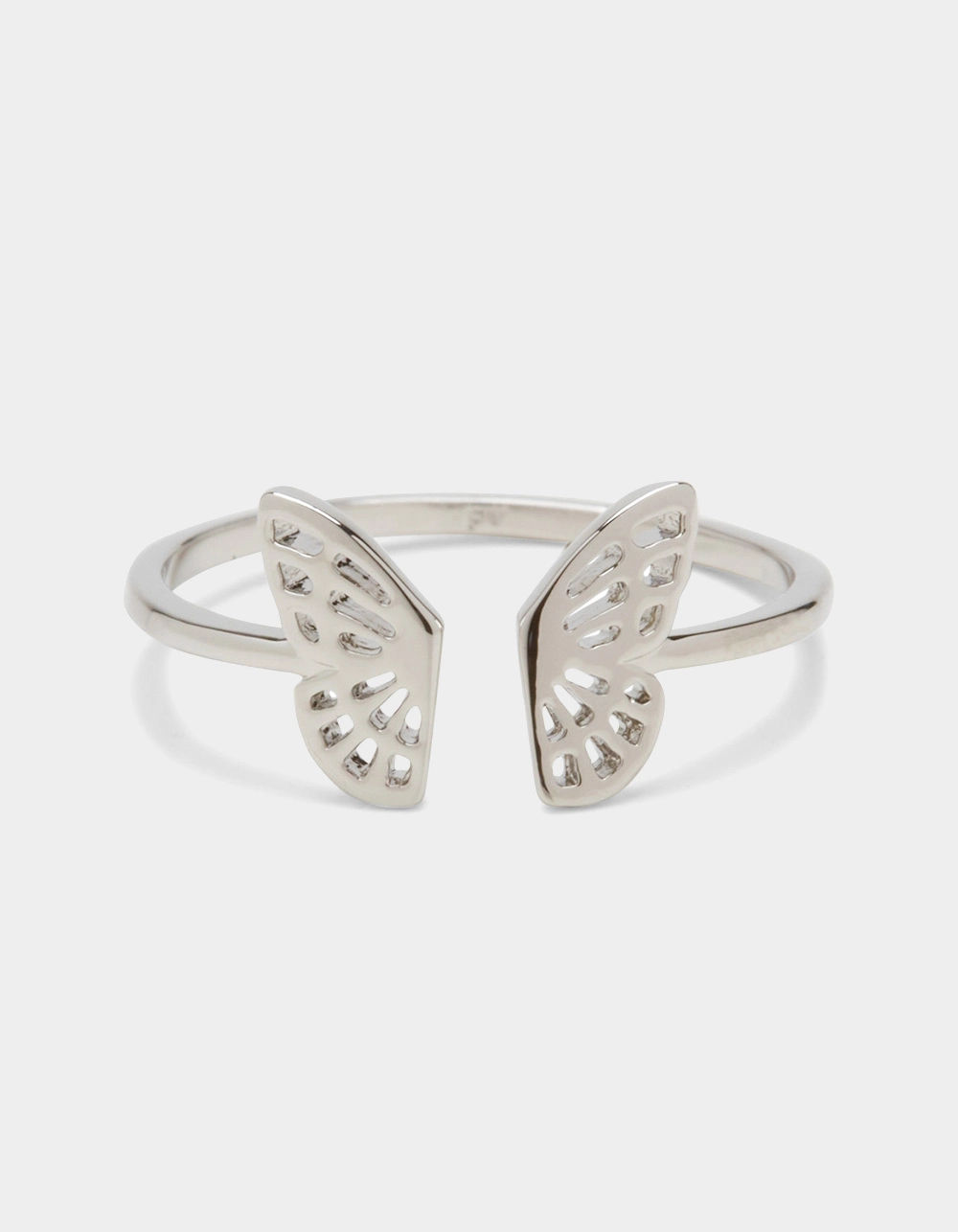 Pura Vida Butterfly Ring. Brass base with rhodium plating. Imported.
