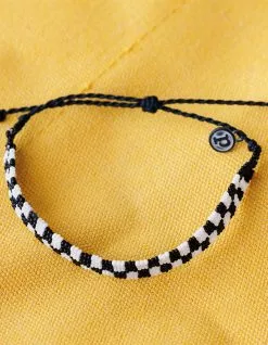 Pura Vida Woven Seed Bead Checkerboard Bracelet. Get that effortless ‘60s style with our Woven Seed Bead Checkerboard Bracelet. Available in two bold color combos—the classic black and white or baby blue and white—this intricate seed bead style will be the highlight of any outfit. 100% Waterproof. Wax-coated bracelet. Adjustable from approximately 2-5 inches in diameter. Imported.