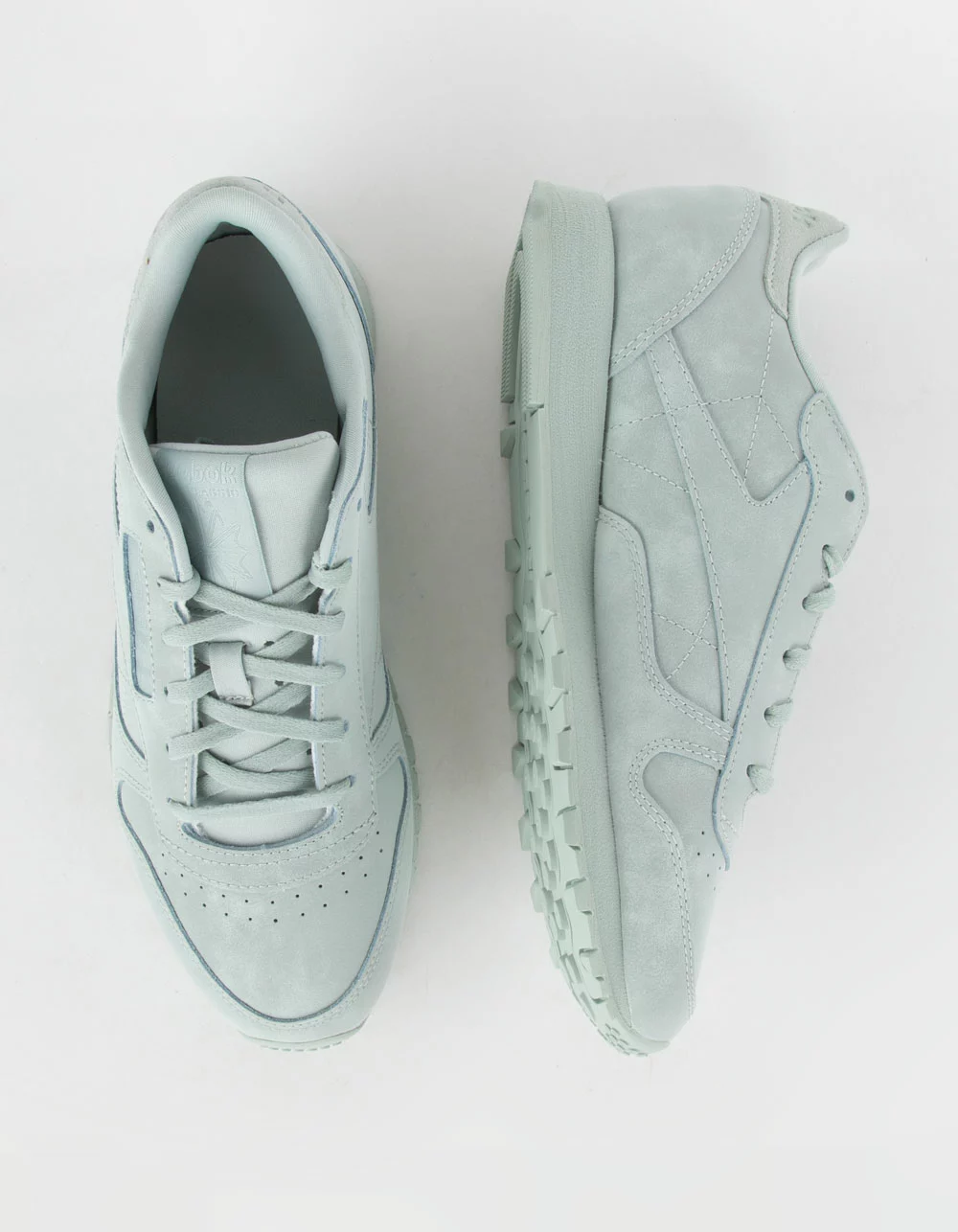 Reebok Classic Leather Vintage Pastel Shoes. There’s something about a vintage look that draws up our fondest memories. These women’s Reebok shoes channel that profound nostalgia with colors inspired by sun-washed court surfaces. They have a soft leather upper with detailed stitching. Subtle metallic hits of textured leather give it that patina look of a cherished keepsake. Nubuck upper. Soft feel. EVA midsole. Textile lining. Durable rubber outsole. Lace closure. Imported.