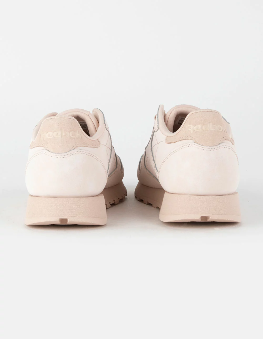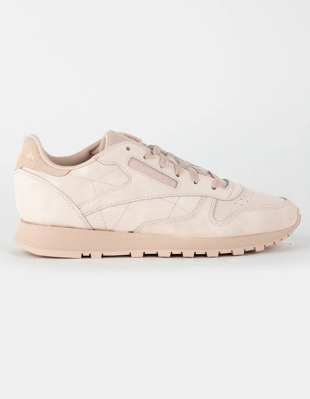 Reebok Classic Leather Vintage Pastel Shoes. There’s something about a vintage look that draws up our fondest memories. These women’s Reebok shoes channel that profound nostalgia with colors inspired by sun-washed court surfaces. They have a soft leather upper with detailed stitching. Subtle metallic hits of textured leather give it that patina look of a cherished keepsake. Nubuck upper. Soft feel. EVA midsole. Textile lining. Durable rubber outsole. Lace closure. Imported.