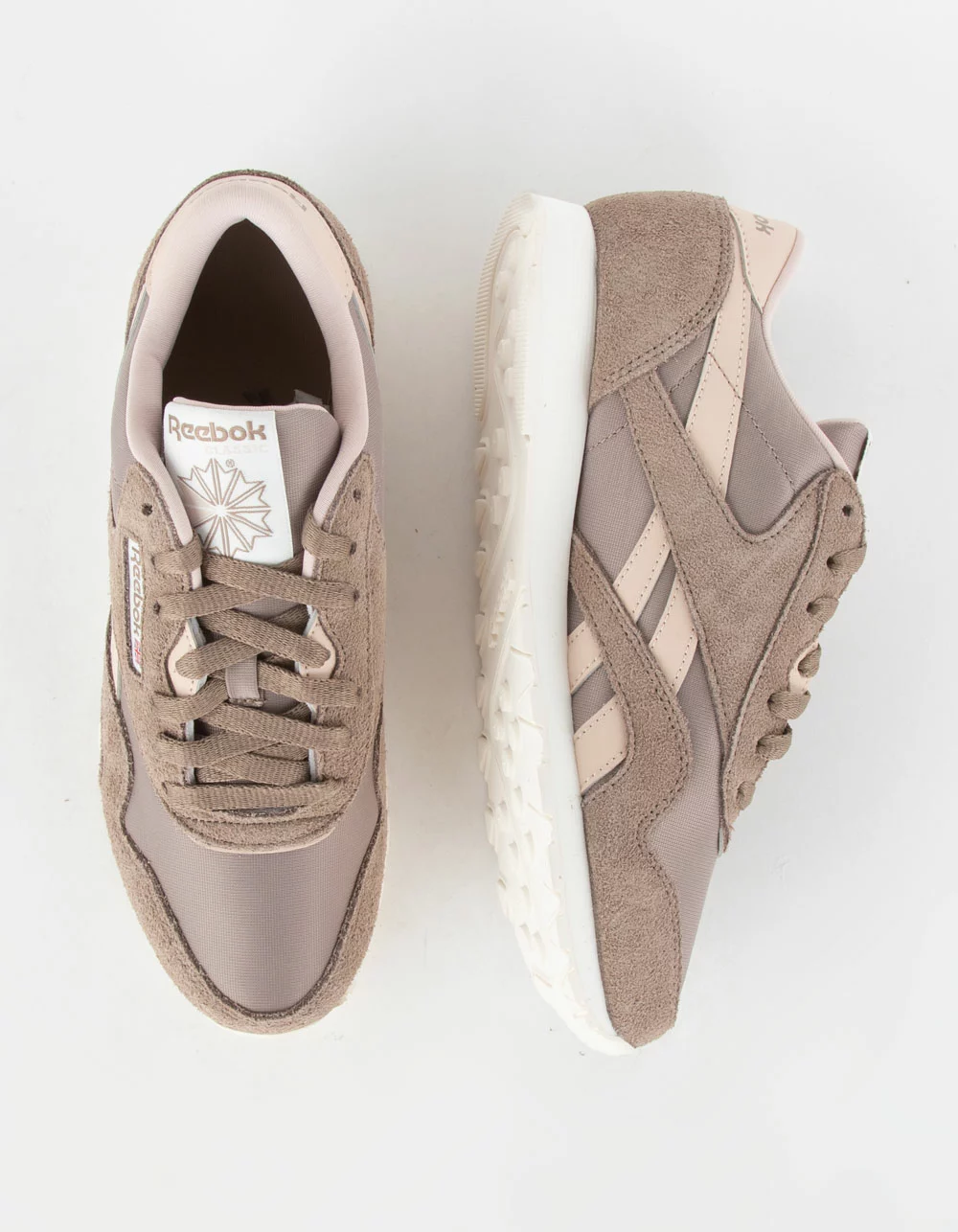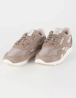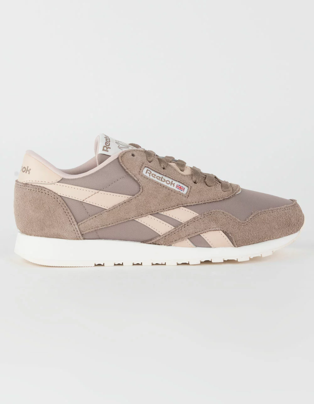 Reebok Classic Nylon Vintage Pastel Shoes. A soft touch for your everyday look. These women’s Reebok shoes are done up in pastel colors for a delicate vibe and a vintage feel. They have a nylon upper and buttery-soft suede overlays to give it that velvety feel you can wear anywhere. Textile lining. Rubber outsole. Lace closure. Imported.