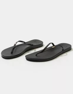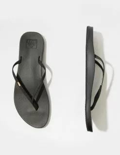 Reef Cushion Bounce Slim sandals. Reef signature cushion bounce foam footbed. Arch support and heel cupping. High density rubber sponge outsole. Faux leather straps with gold embroidery stitching detail. Imported.