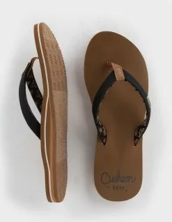 Reef Cushion Sands Thong Sandals. Synthetic straps. Squishy footbed. Soft cushion EVA for extra comfort and arch support. Rubber outsole. Imported.