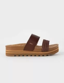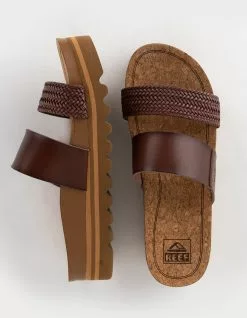 Reef Cushion Vista Hi Platform Sandals. Get Hi! Say hello to the Cushion Vista Hi! Hi on style. Live the Hi life. So many ways we could play this. Same goes for you: Up top they’re a classic two-strap slide in vegan leather. Down below they’ve got a lug design outsole that adds height (1.75″) and style. Super soft unlined PVC Free vegan leather two strap slide. Signature cushion with rebound footbed with a wider shape and generous arch support and heel cupping. Lightweight and durable EVA outsole with lug design. 100% natural Cork footbed cover. Imported.