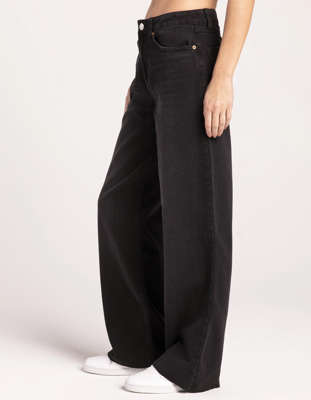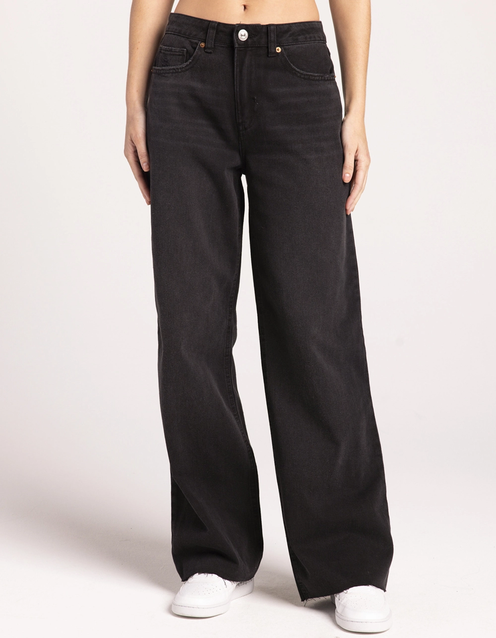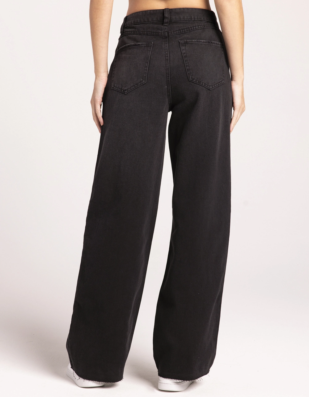 Rewash Wide Leg Jeans. Belt loop waist. Button closure paired with zipper fly. Traditional 5 pocket design. High rise. Wide leg fit. Raw hem. Approx. inseam: 30″. 62% Cotton, 20% Rayon, 18% Polyester. Machine wash. Imported.