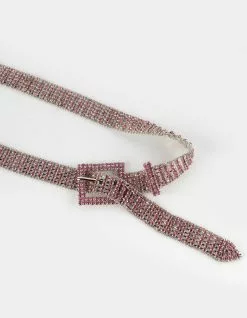 Rhinestone Belt. All over pink rhinestones. Silver toned. Single buckle. Imported.