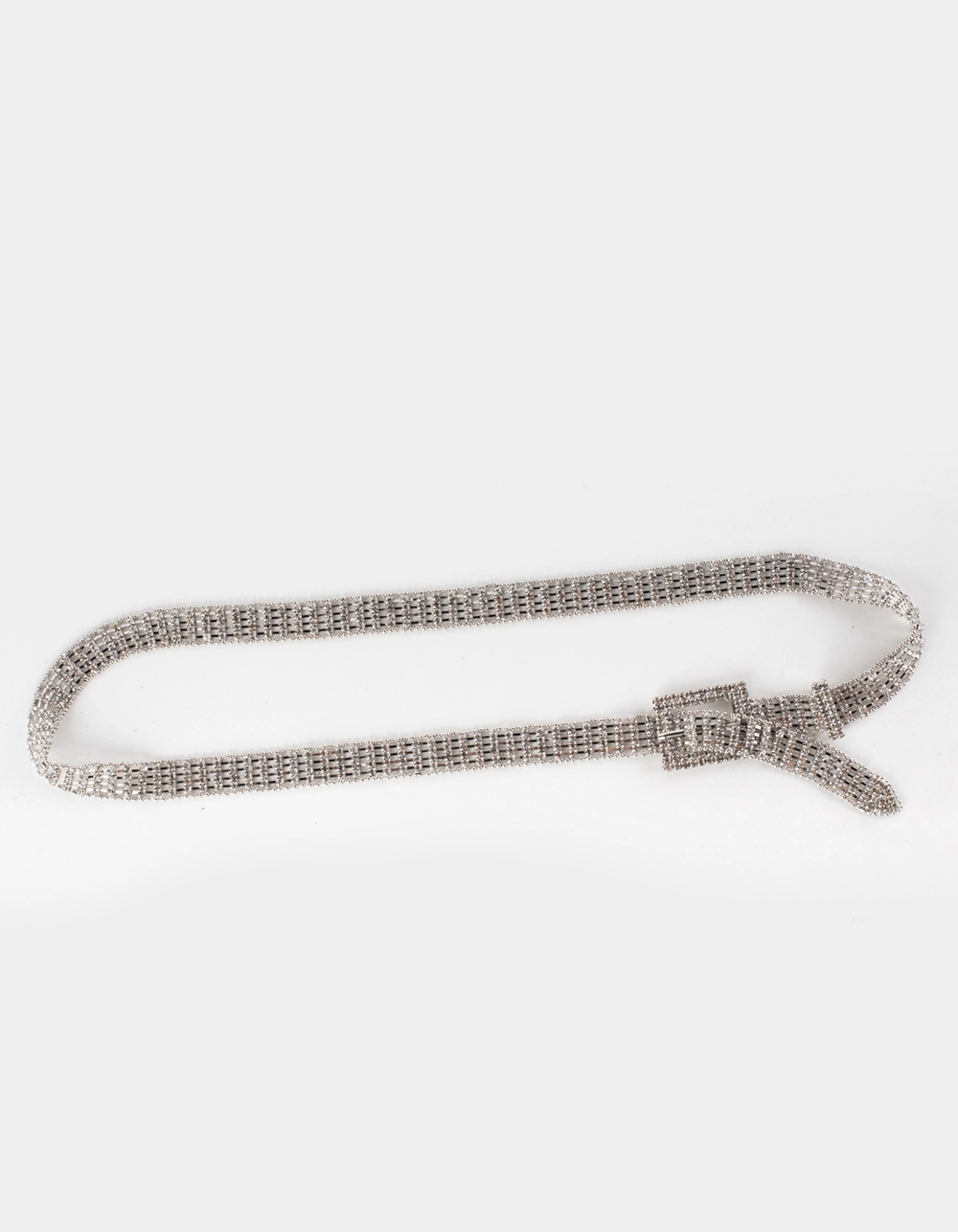 Rhinestone Belt. All over rhinestone. Silver toned. Single buckle. Imported.