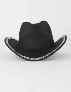 Rhinestone Cowboy Hat. High crown. Adjustable strap inside. Rhinestone detailing on top and underside of brim. 100% Polyester. Hand wash. Imported.
