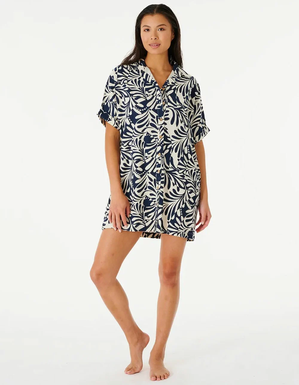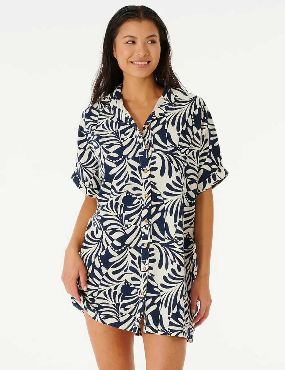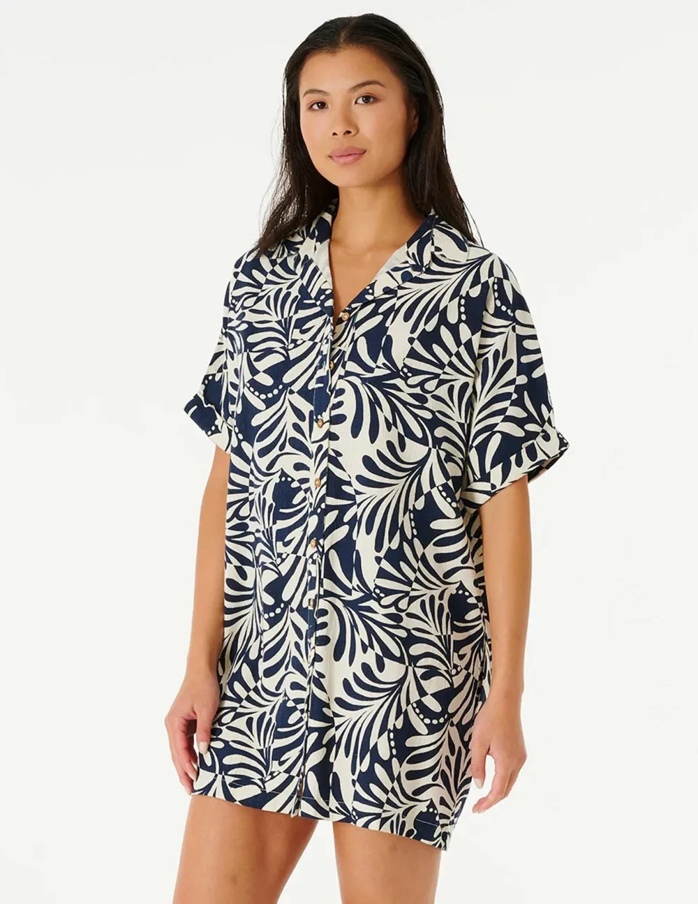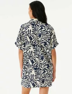 Rip Curl Afterglow Shirt Dress. The Afterglow Shirt is a wild button through collared dress, featuring the collections signature swirl design, rolled sleeves, side pockets, and a comfy linen composition. Allover yardage print. Metal logo trim. 88% Cotton 12% Linen. Machine wash. Imported.
