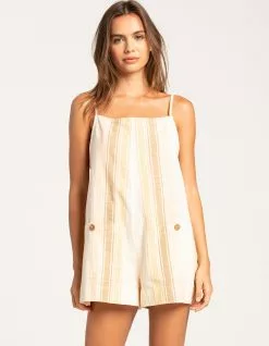 Rip Curl Classic Surf Stripe Romper. Simple, elegant, beach-worthy styles, the Classic Surf range is ideal for bare-foot strolls, and easy-wear fashion. This epic onesie is no different, with light tones, a relaxed fit with adjustable straps, and front patch pockets with coconut buttons, it’s perfect as overswim or a sunny day throw-on-and-go! 100% Cotton. Machine wash. Imported.