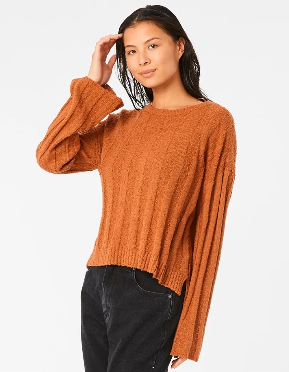 Rip Curl Dreamer Womens Crewneck Sweater. The Dreamer Crew is a rad women’s sweater. This cropped fit pullover is made from a cozy neps knit fabric with dropped sleeves and billowing cuffs for flowy relaxed vibes. 91% Cotton, 9% Polyamide. Hand wash. Imported.