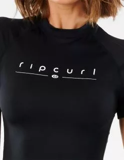 Rip Curl Golden Rays Short Sleeve Rashguard. This UV tee has a 50+ UPF rating to keep you protected from the sun’s rays. Rip Curl graphic on front. 92% Polyester 8% Elastane. Machine wash. Imported.