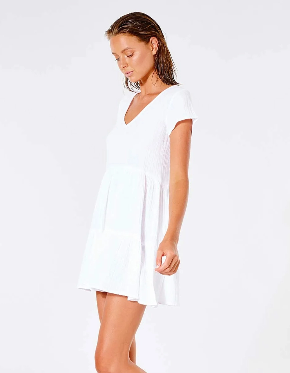 Rip Curl Premium Babydoll Dress. Perfect to throw over bikinis or to dress up for a night out. Made in a relaxed fit and finished with shirring detail. Metal logo trim. 100% Cotton. Machine wash. Imported.