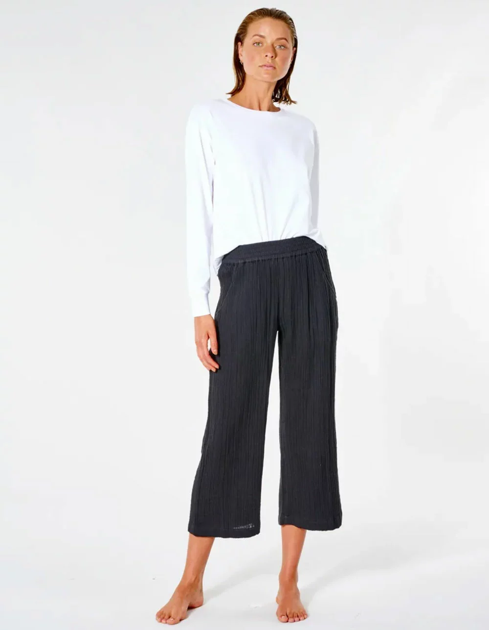 Rip Curl Premium Surf Beach Pants. The Premium Surf Beach Pant is a summer essential that offers full coverage with an ultra-flattering fit. With a textured 100% cotton and an elastic waistband and front pockets. Cropped. Metal logo trim. 100% Cotton. Machine wash. Imported.
