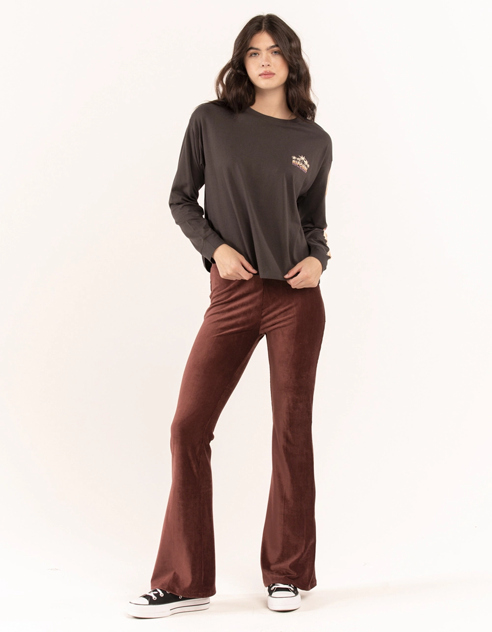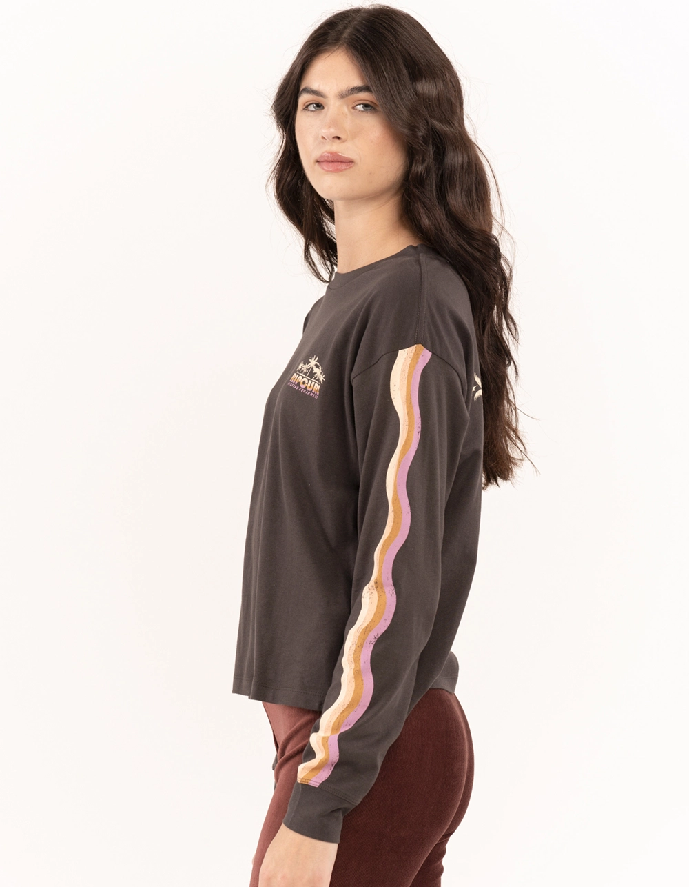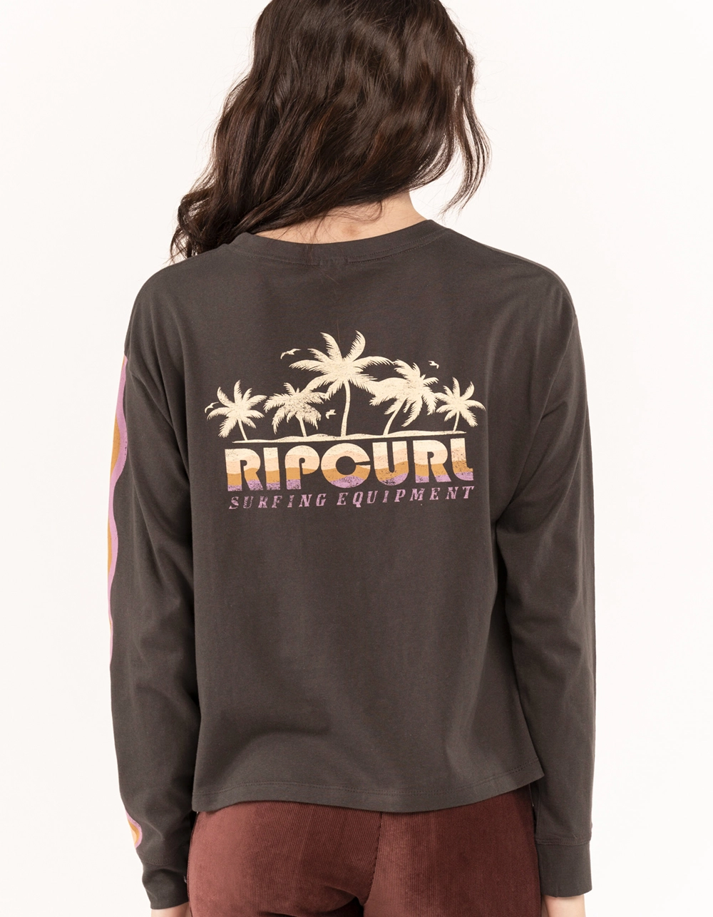 Rip Curl Swell Tee. Graphic on left chest. Large graphics on back and left sleeve. Ribbed crew neckline. Long sleeves. Crop hem. 100% Cotton. Machine wash. Imported.