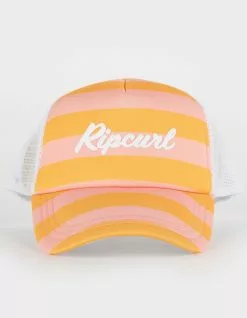 Rip Curl Vacation Club Trucker Hat. The Vacation Club Trucker Hat is a great beach cap featuring traditional design with curved peak, high structured crown, and mesh back with snap adjuster. Foam front featuring Rip Curl script. 100% Polyester. Imported.