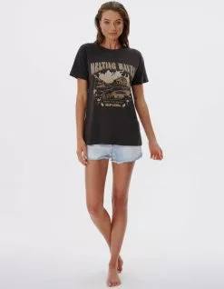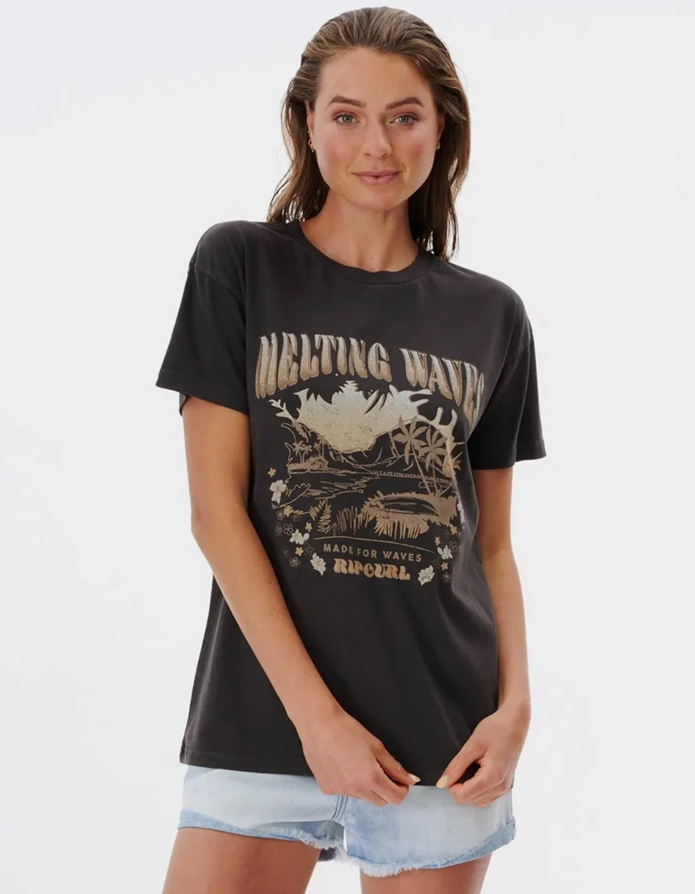 Rip Curl Wanderer Oversized Tee. The Wanderer Oversized Tee is an epic women’s t-shirt. Designed in an ultra relaxed oversized fit with acid wash finish, branded clamp label and Melting Waves illustration front print. Large graphic on front. Short sleeve. Crewneck. 100% Cotton. Machine wash. Imported.