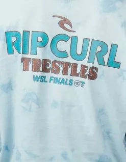 Rip Curl WSL Finals Stack Heritage Crop Tee. Gear up for finals day with the WSL Finals Stack Heritage Crop Tee, stamped with rad graphics. Designed with a cute crop fit, it’s perfect for all day wear at the comp or watching from home. See you then! Tie dye wash. Graphic on left chest. Large graphic on back. Ribbed crew neckline. Short sleeves. Crop hem. 100% Cotton. Machine wash. Imported.