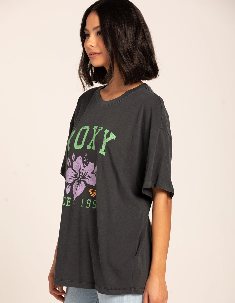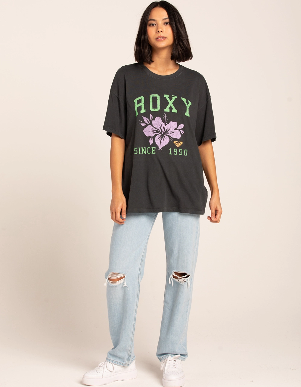 Roxy 1990 Oversized Tee. Large graphic on front. Ribbed crew neckline. Short sleeve. Oversized fit. 100% Cotton. Machine wash. Imported.