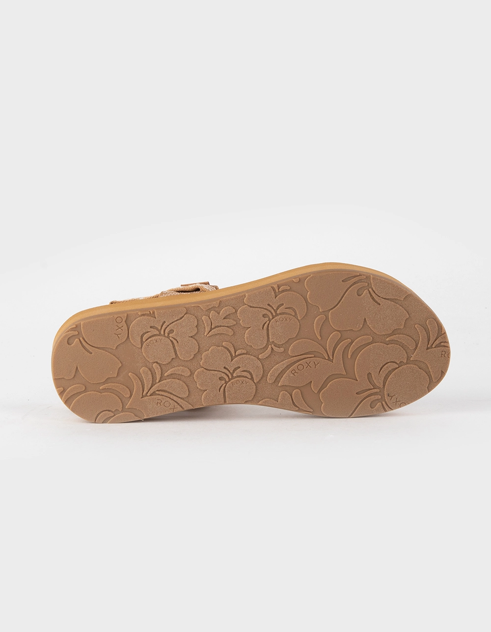Roxy Cage Velcro Sandals. These multi-strap sandals feature an adjustable upper with a hook-and-loop tape closure for a secure fit, while the soft footbed and rubber outsole provide comfort and stability. Roxy logo and heritage art on heel. Textile plastic blend upper fabric. REPREVE™ traceable, recycled polyester made from plastic bottles. Imported.