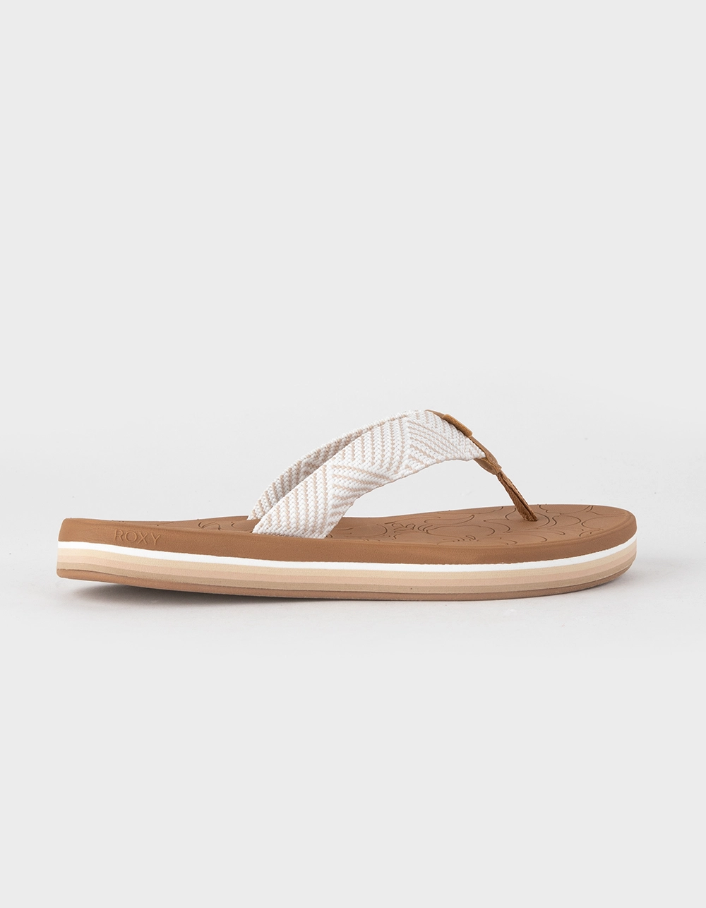 Roxy Colbee High Sandals. Add some subtle stripes to your summer fits with the Colbee. These comfy sandals feature a printed textile upper to match your favorite sundresses and bikinis. The Hydroboundâ„¢ footbed cushioning and rubber outsole ensures a comfortable fit with plenty of support adventure to adventure. Textile upper. Hydroboundâ„¢ cushioning, contoured molded footbed. ROXY print and anatomical PU arch support. Multi-colored EVA midsole. Rubber outsole with heritage ROXY print. Imported.
