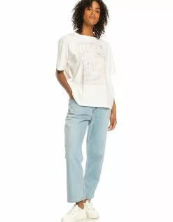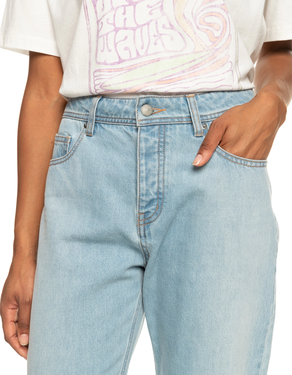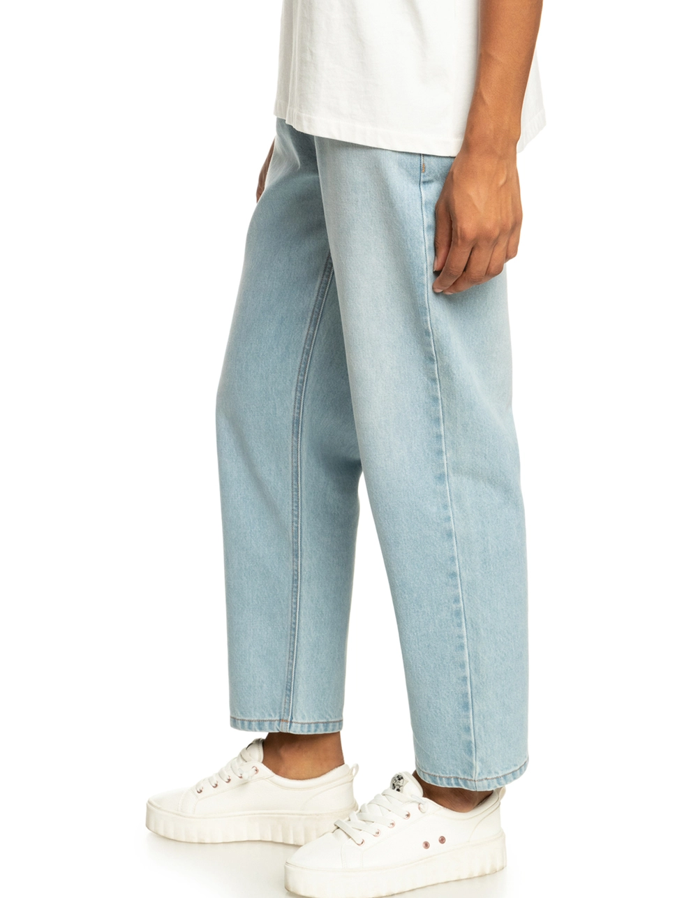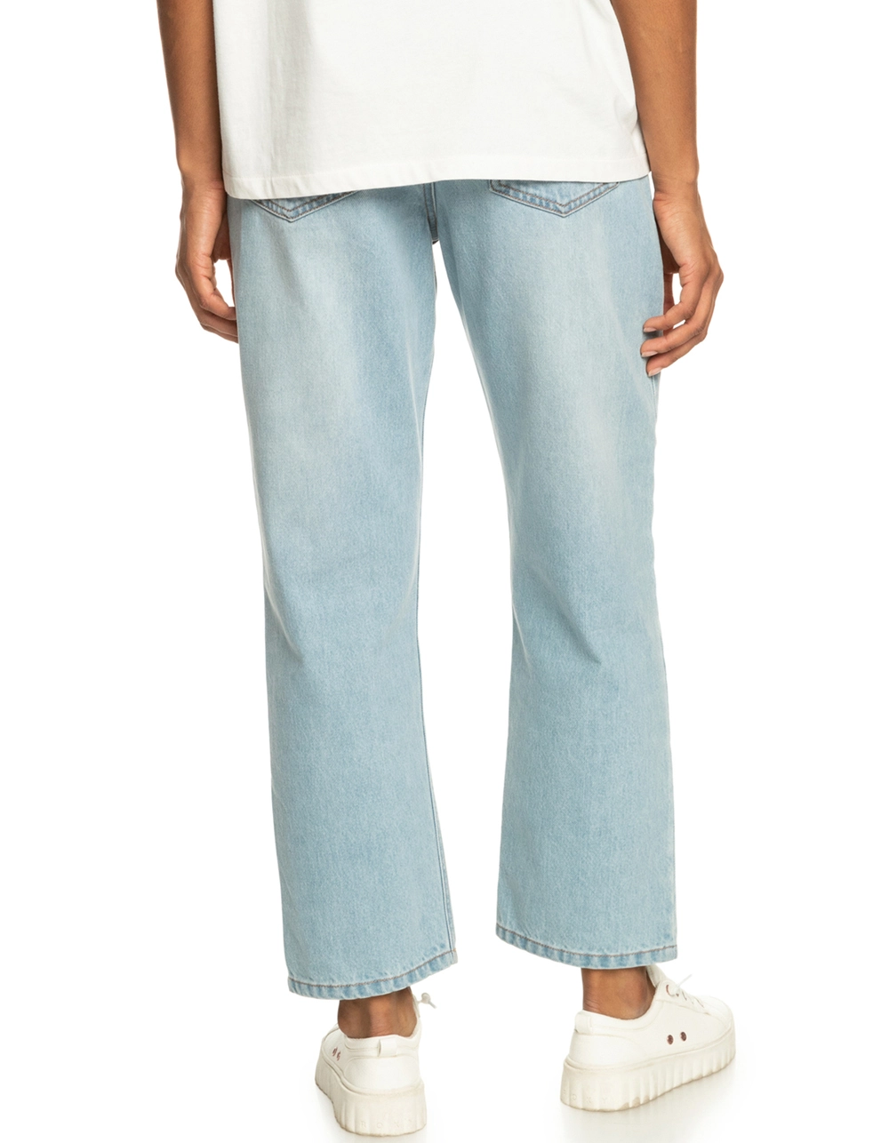 Roxy Electric Move Womens Mid-Cropped Straight Leg Jeans. Straight ankle length. Mid rise waist. Front waistband opening with metal shank button. Hidden metal shank buttons on fly. Metal rivet details. 5 pocket design. 100% Cotton. Machine wash. Imported.