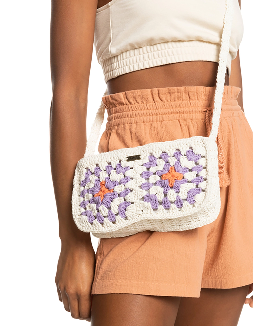 Roxy Fresh Iris Small Crossbody Bag. Crochet and florals. Does it get any better? This woven crossbody bag has one main zippered compartment, the perfect size for your daily on-the-go essentials. 1 main zip-up compartment. 1 inside slip pocket. Fixed strap. Roxy metal plate. Dimensions: 6″ [H] x 8.7″ [W] x 2″ [D] / 15.5 [H] x 22 [W] x 5 [D] cm. 100% Cotton. Imported.