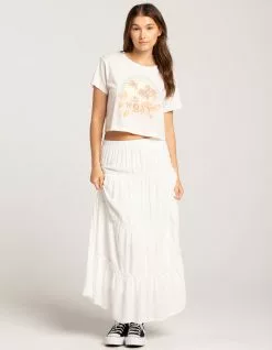 Roxy Haleiwa Moment Tee. Large graphic screened on front. Ribbed crew neckline. Short sleeve. Soft and lightweight material. 100% Cotton. Machine wash. Imported.