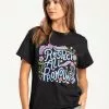 Roxy Happy Hibiscus Tee. Graphic screened on center chest. Ribbed crew neckline. Short sleeve. 100% Cotton. Machine wash. Imported.