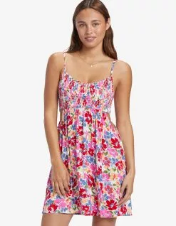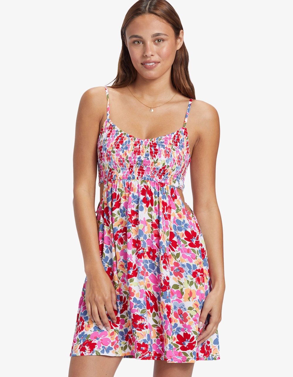 Roxy Hot Tropics Mini Dress. Made of airy viscose fabric, the Hot Tropics dress has a fitted bodice and an easy skirt. Adding playful touches with side cut-outs, this printed mini dress is a perfect one-and-done party piece. Allover print. Adjustable straps. Side cut-out detail. 100% Viscose. Imported.