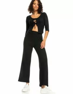 Roxy Looking Good Tie-Front Thermal Cardigan. Our take on the 90s icon, this women’s tie-front cardigan sweater is made in cozy ribbed thermal fabric to give it a velvety-soft feel, adding 3/4 sleeves and a ROXY woven label. Layer it over a tank or rock it on its own for perfect warm-weather style. Stretch polyester viscose cozy thermal. 3/4 sleeve. Tie front. Roxy woven edge label. 67% Polyester, 29% Viscose, 4% Elastane. Machine wash. Imported.