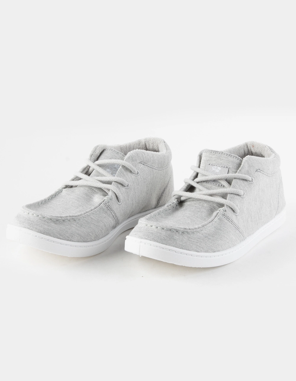 Roxy Minnow Mid-Top Shoes. Textile upper. Mid top with padded collar. Back tape detail. Corded cotton laces. Memory foam padded insole with recycled canvas sock lining. REPREVE® traceable, recycled terry cloth lining for added comfort. Flexible TPR injected outsole. Imported.