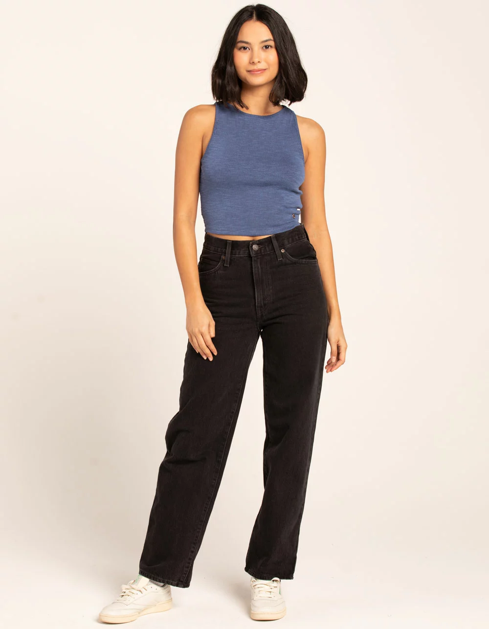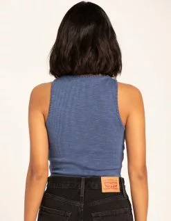Roxy Never Ending Vacay Tank Top. Made of stretchy knit-blend fabric, this high-neck fitted tank top is the perfect addition to your year-round wardrobe. Perfect for layering or as a classic stand-alone piece. Ribbed fabrication. Cropped fit. 68% Cotton, 28% Polyester, 4% Elastane. Machine wash. Imported.