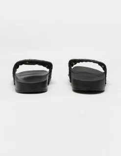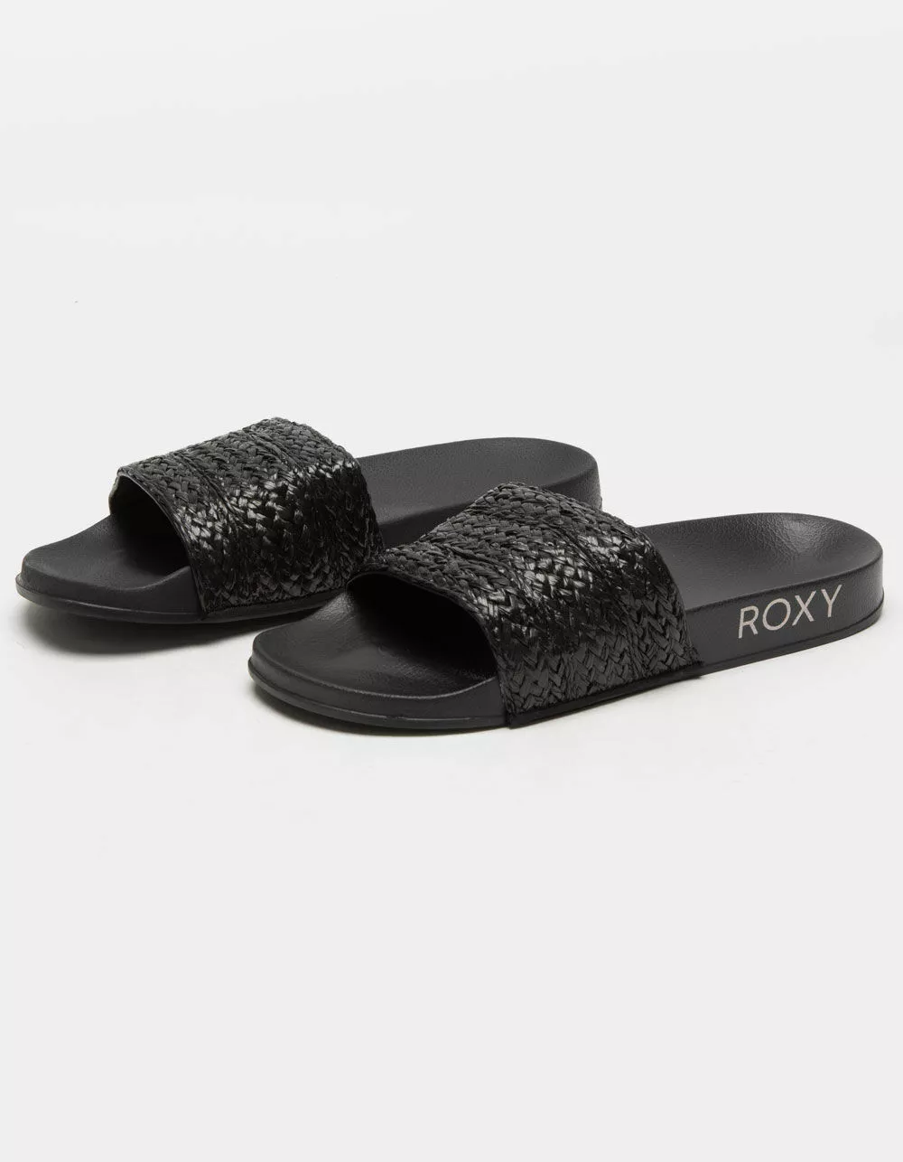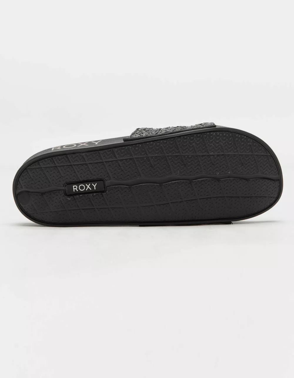 Roxy Slippy Jute Sandals. Nylon lined woven jute upper. Molded EVA insole. Textured EVA outsole for added traction. Roxy text logo at outsole. Upper: 100% Synthetic, Lining: 100% Synthetic, Outsole: 100% EVA. Imported.