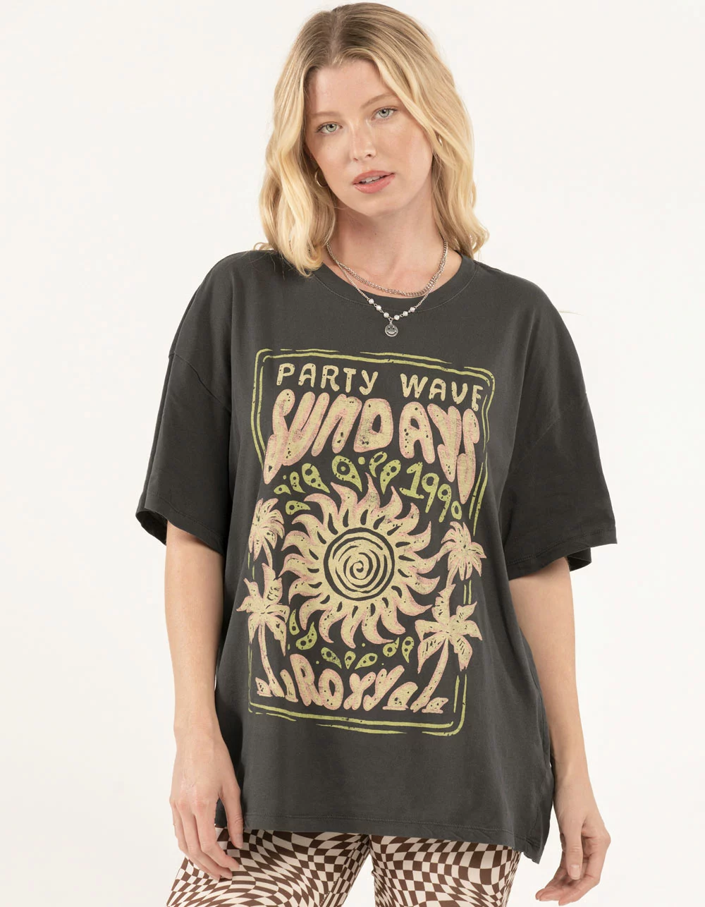 Roxy Subliminal Oversized Tee. Graphic on front. Ribbed crew neckline. Short sleeves. Oversized fit. 100% Cotton. Machine wash. Imported.