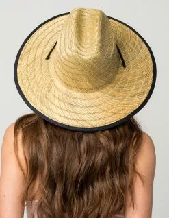 Roxy Tomboy Lifeguard Straw hat. Firm, straw hat with Roxy logo patch on front. Adjustable drawstring. 100% straw. Imported.Head circumference: 24.5″Brim width: 4″