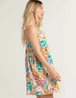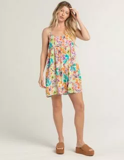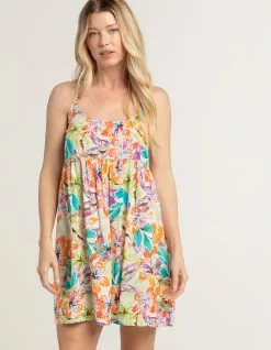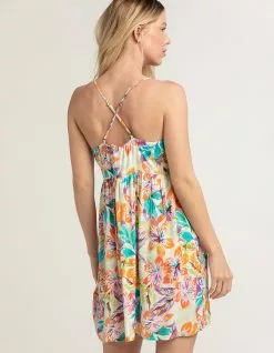 Roxy Tropical Sundance Dress. Allover floral print. Scoop neckline. Adjustable spaghetti straps that cross in the back. Approx. length: 35”. 100% Viscose. Machine wash. Imported.