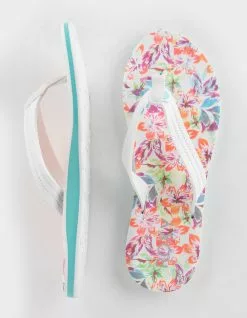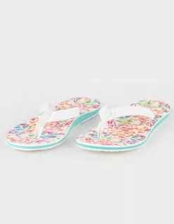 Roxy Vista Loreto Sandals. Water-friendly EVA upper. Soft EVA footbed with allover graphic print. Rubber outsole. Logo tread. Woven Roxy label on upper. Imported.