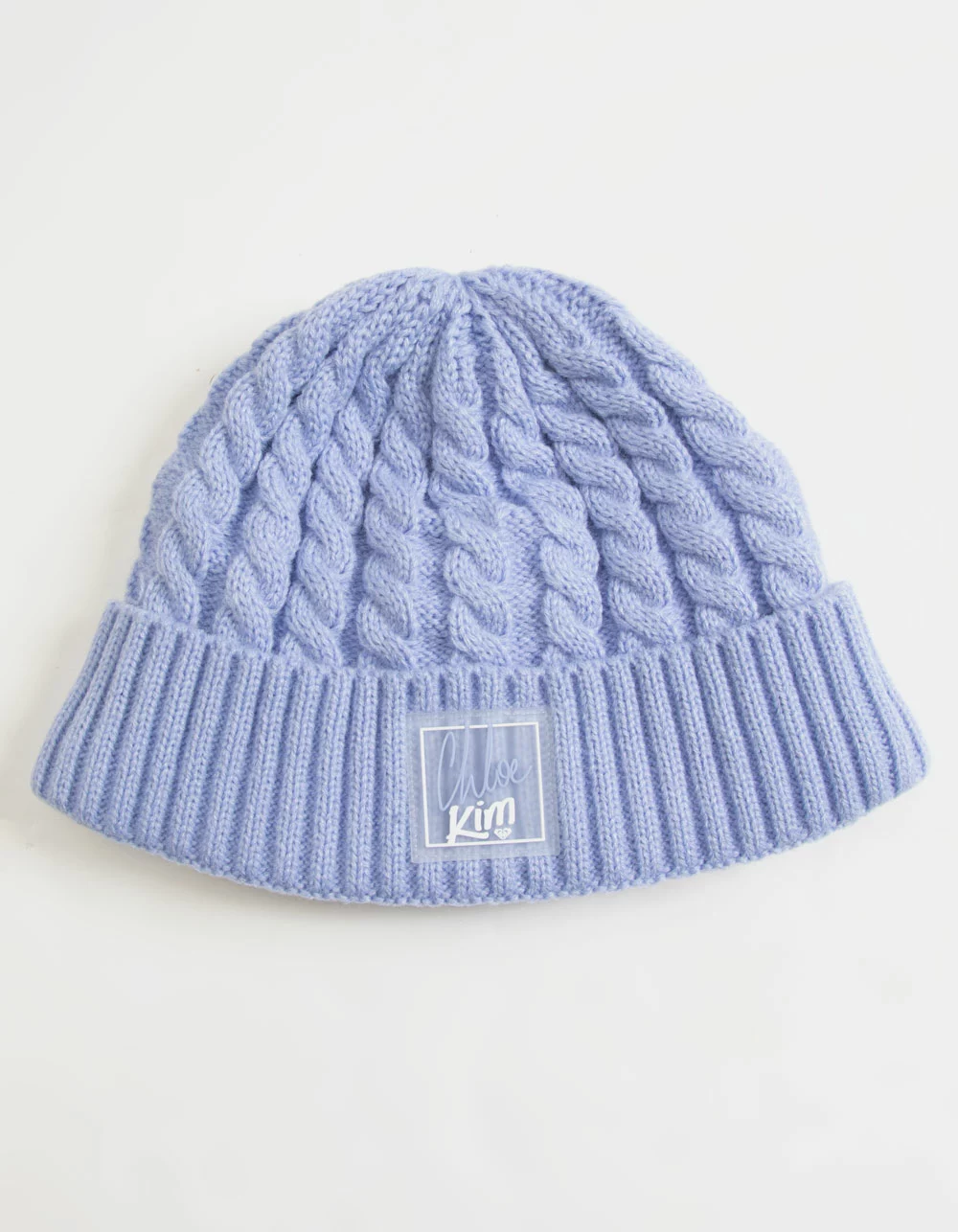 Roxy x Chloe Kim Beanie. Cable knit acrylic. Soft fleece-lined band. Label on cuff. 100% Acrylic. Imported.
