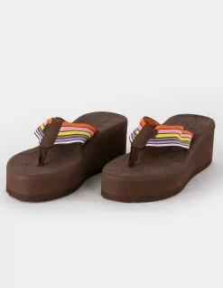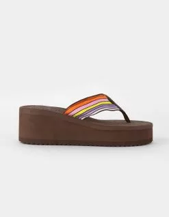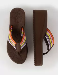 Roxy x Kate Bosworth Surf Kind Kate Kallie Womens Platform Sandals. With a recycled fabric upper strap in a colorful stripe, the Kallie platform sandals from the Surf Kind Kate collection feature a contoured Hydrobound™ footbed for all-day wearability and a durable lug sole for better traction. Anatomical faux-leather arch support. Roxy heritage art. Upper: 90% Polyester, 5% Synthetic PU, 5% TPR. Lining: 100% Polyester. Outsole: 60% Textile, 40% EVA 100% EVA for Non-USA. Imported.