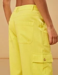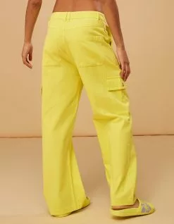Roxy x Kate Bosworth Surf Kind Kate Cargo Pants. With a straight leg and a waist-accentuating high rise, the Surf.Kind.Kate cargo pants are crafted of BCI cotton with buttoned side pockets and a zipper fly. In a warm sunshine hue, they’re a perfect way to add seasonal color to your daily uniform. Roxy embroidery. Approx. inseam: 28”. 100% Cotton. Machine wash. Imported.