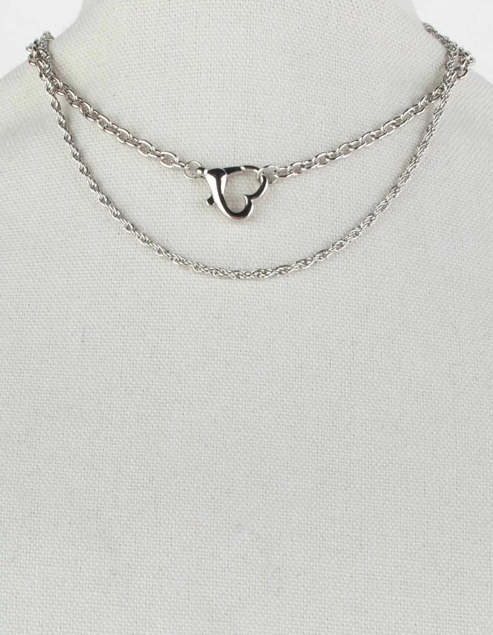 RSQ 2 Pack Chain Layered Heart Lock Necklace. Two chain necklaces that can be worn as a set or individually. Features a heart shaped lobster clast closure. Silver toned. Imported. WARNING PROP 65: This product can expose you to chemicals including lead, which is known to the State of California to cause cancer and birth defects or other reproductive harm. For more information go to www.P65Warnings.ca.gov.