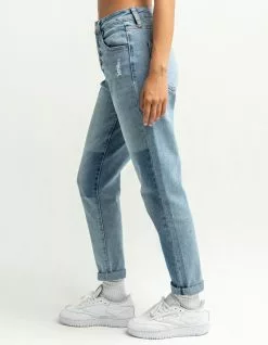 RSQ Colorblock Jeans. Button front waist with zipper fly. Color block wash. Light destruction at left hip.