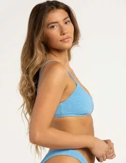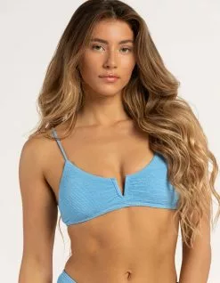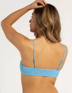 RSQ Ruffle V Bralette Bikini Top. Allover ruffled texture. V-neckline. Adjustable spaghetti straps. Pull on bralette. Removeable bra pads. 86% Nylon, 14% Spandex. Lining: 100% Polyester. Hand wash. Imported.