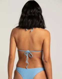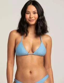 RSQ Triangle Lurex Bikini Top. Solid, shimmery triangle bikini top. Adjustable halter neck and back ties. Removable padded cups. Fully lined. 83% Nylon, 11% Spandex, 6% Metallic. Hand wash. Imported.