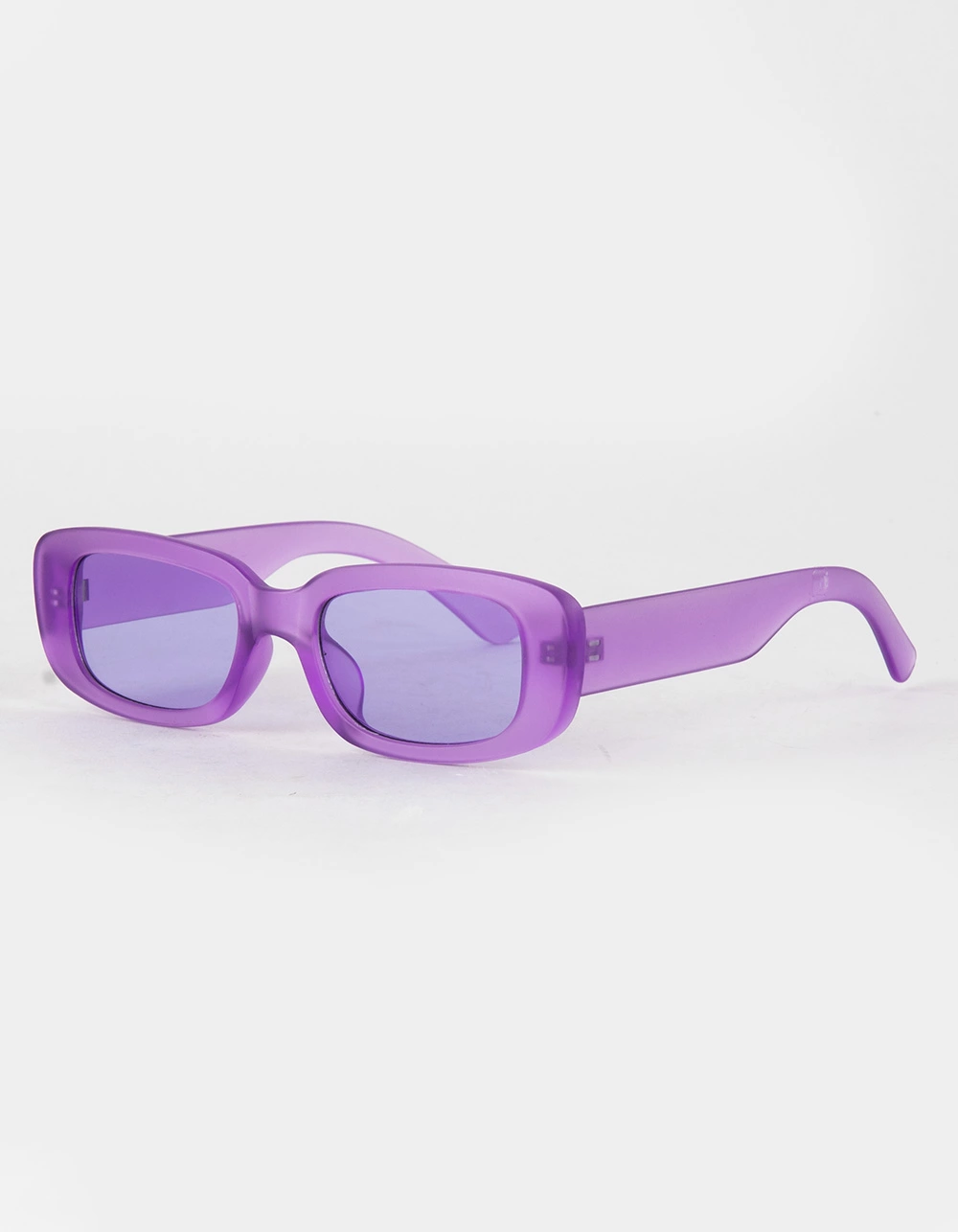 RSQ Waterhose Rectangle Sunglasses. Dark rectangle lenses. Plastic rectangle frames with nose guards and plastic arms. 100% UV protection. Imported.