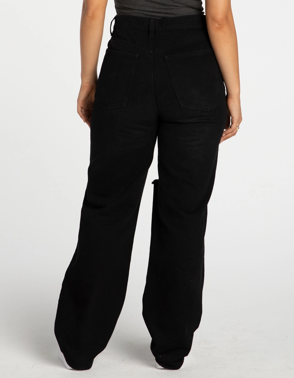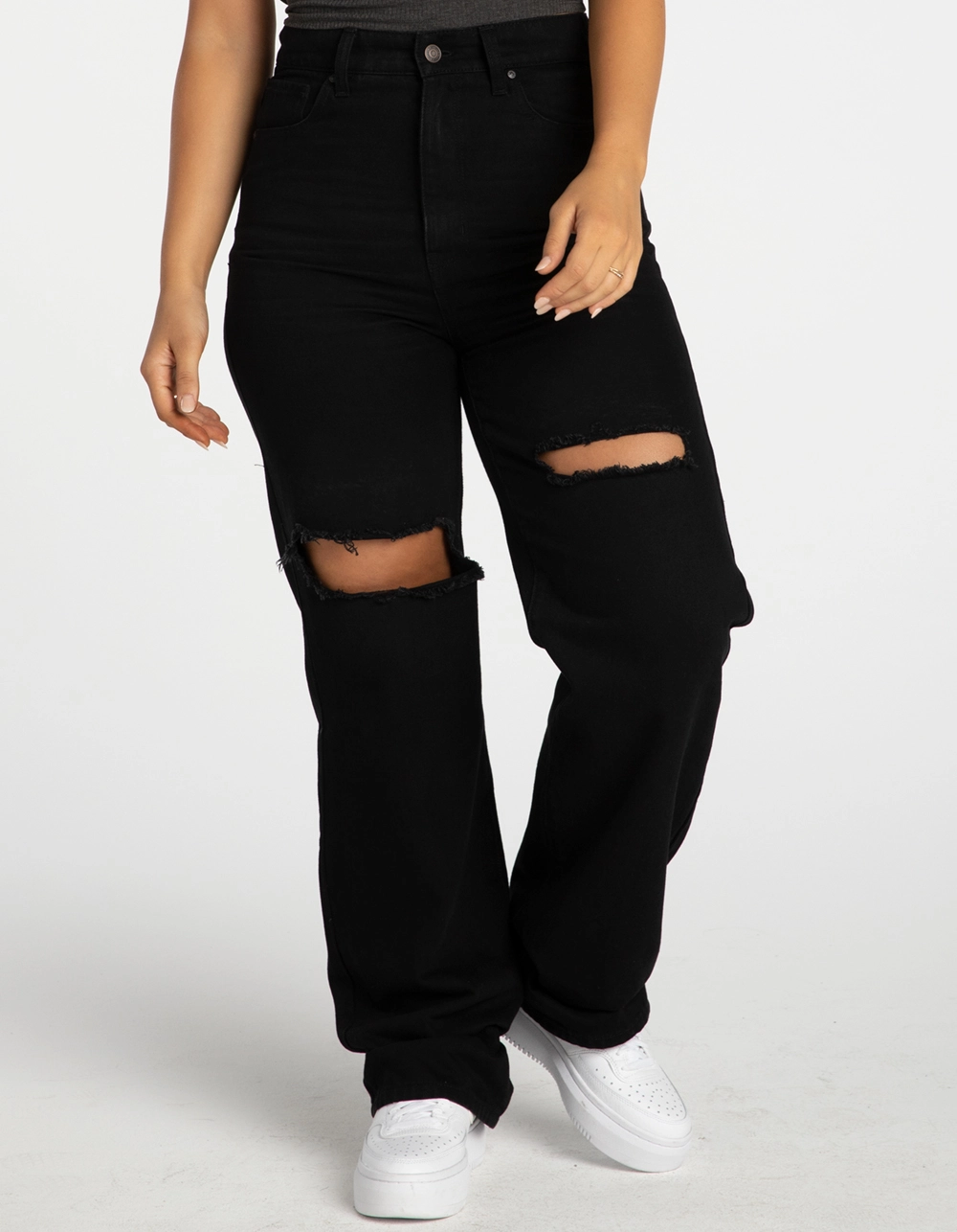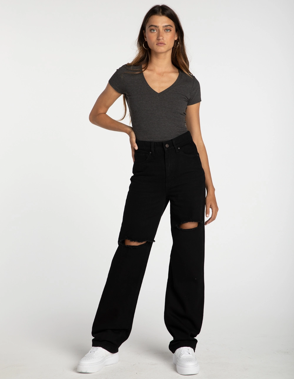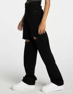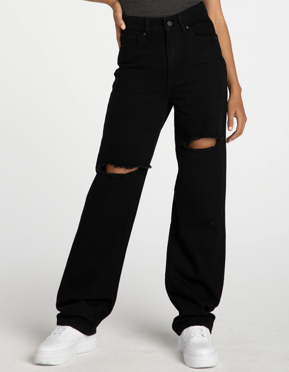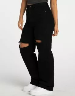 RSQ Baggy Jeans. Classic denim with no stretch. Traditional 5-pocket styling. Our most relaxed fit. High rise waist. Ripped knees. Rigid denim. Button waist and zip fly. Approx. inseam: 31″. 100% Cotton Machine wash. Imported.
